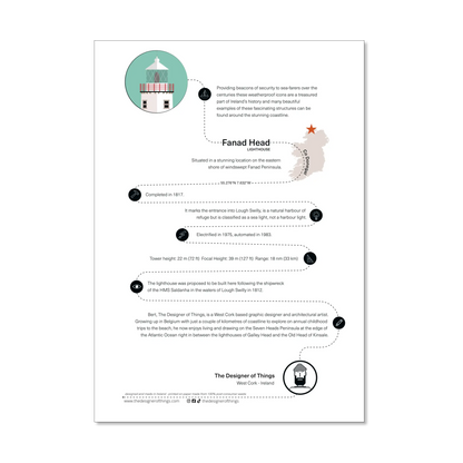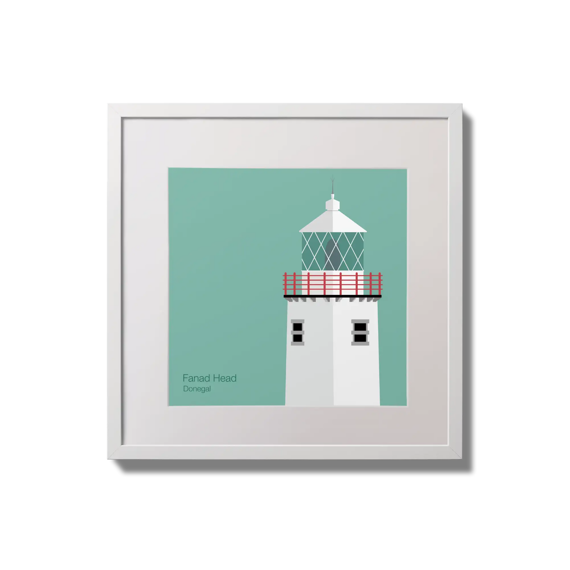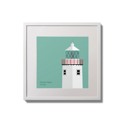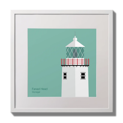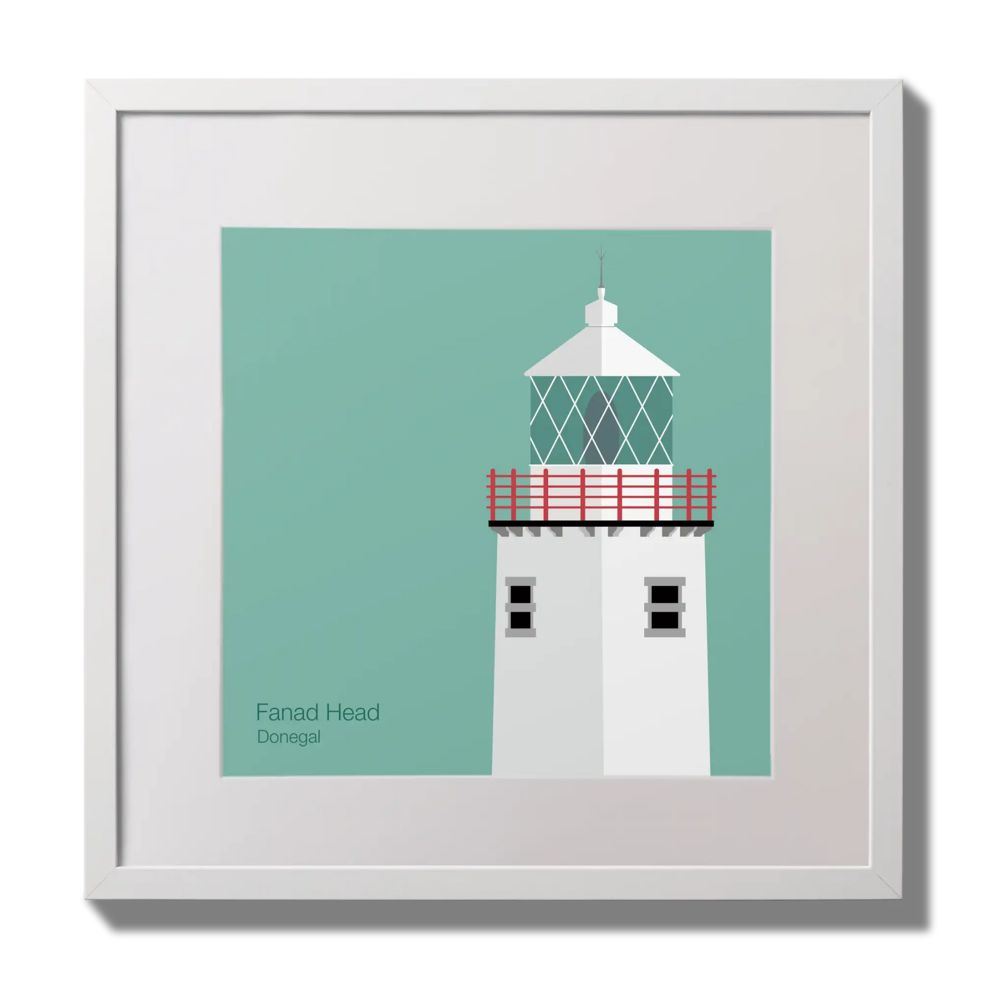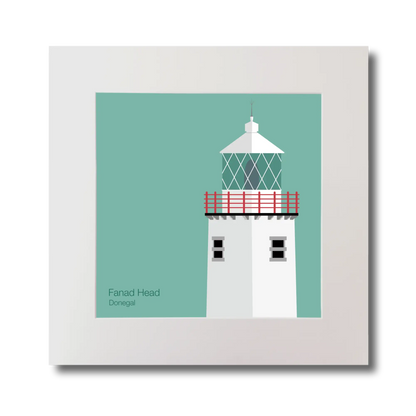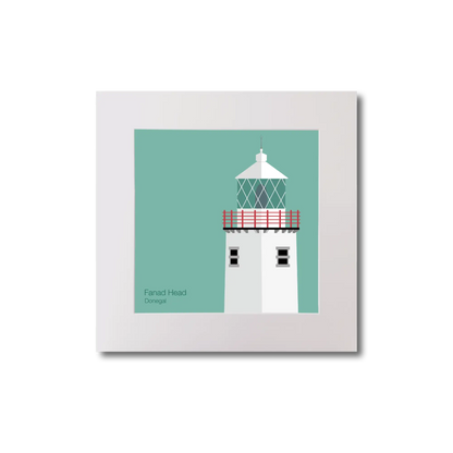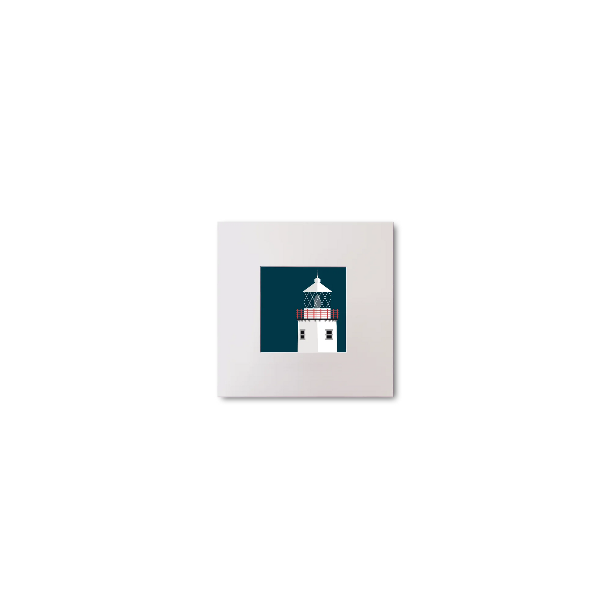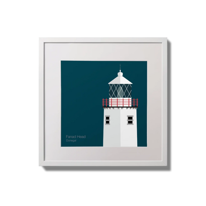 Illustration of Fanad Head lighthouse on a midnight blue background, mounted and measuring 30x30cm.