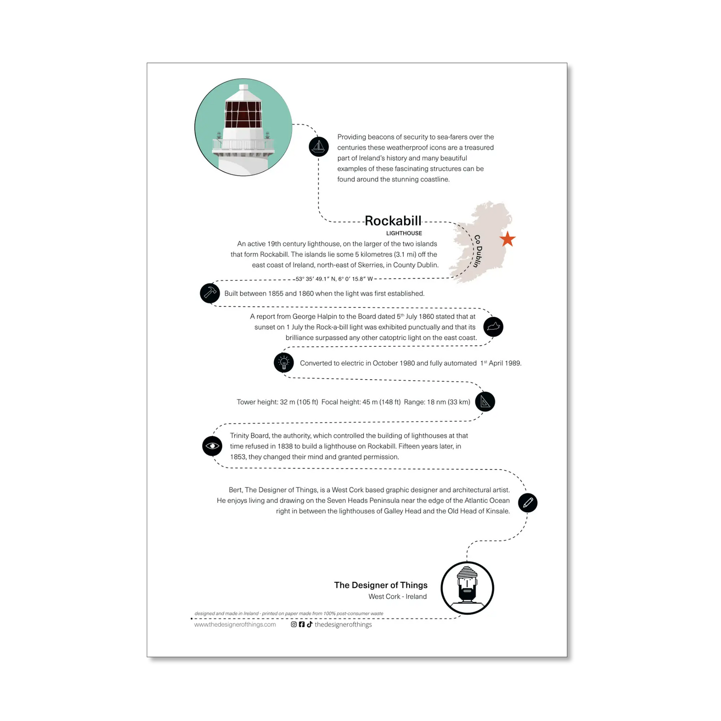 Rockabill lighthouse, completed in 1860, stands on a rocky islet off the coast of Skerries in County Dublin. Its construction was prompted by the high number of shipwrecks in the area, and the lighthouse has since played an important role in ensuring the safety of vessels navigating these waters. Rockabill is also a significant site for seabird conservation, as it hosts Ireland’s largest breeding population of roseate terns.